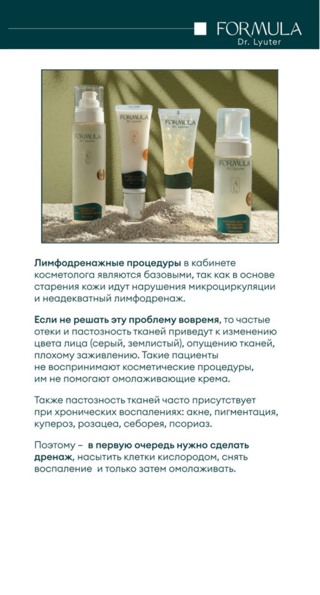 Противоотечный крем для лица является продуктом, разработанным для коррекции отечности и улучшения качества кожи путем воздействия на биохимические процессы, отвечающие за регуляцию влаги и циркуляцию лимфы.